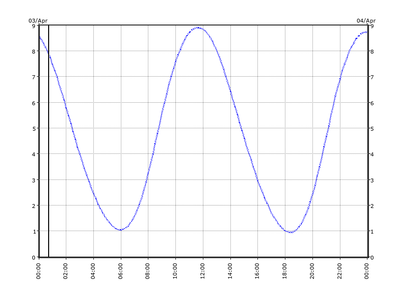 | 12:00 | --- | 0884 | 0876 | 0866 | 0852 | 0836 | 0819 | --- | 0799 | 0777 | 0753 | 0727 | 0700 | 0671 |