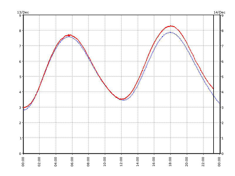 First reading starts at 0000Hrs GMT. Read Across. Readings are Centimetres above Chart Datum (CD). Dates/Times are in UTC.